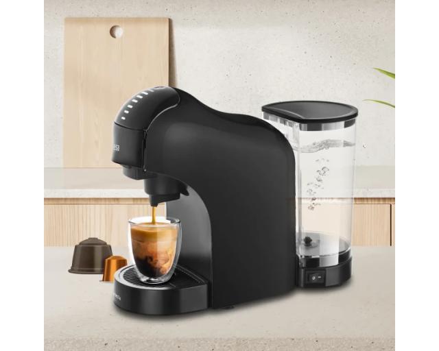 Njegov uklonjivi rezervoar za vodu od 1L olakšava punjenje i čišćenje. Takođe, kompatibilan je sa mlevenom kafom, kao i kapsulama Dolce Gusto, Nespresso i Delta, što vam pruža širok spektar opcija.