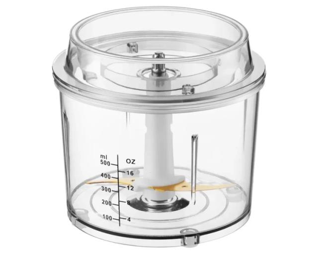 Opis Seckalica snage 400 W olakšava svakodnevnu pripremu hrane, omogućavajući brzo i efikasno sečenje i mućenje različitih sastojaka. Namenjena je domaćinstvima koja žele pouzdan i praktičan uređaj za pripremu manjih i srednjih količina obroka. Ključne prednosti:  Motor snage 400 W obezbeđuje brzo i efikasno sečenje i mućenje sastojaka.<br> Nivo buke od 85 dB(A) omogućava tih rad, pogodan i za domaćinstva sa decom. Kapacitet posude od 1 l i zapremina od 500 ml pružaju praktičnost za svakodnevnu upotrebu. Providan poklopac omogućava kontrolu procesa bez prekidanja rada. Funkcija sečenja i mućenja čini uređaj svestranim za pripremu različitih jela – od povrća za salate do krema i deserata. Elegantna bela boja uklapa se u svaku kuhinju.